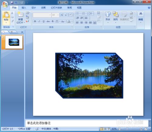 我们就在PPT中给图片添加上了剪裁对角线、深蓝样式。