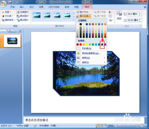 点击格局,选择图片样式下的剪裁对角线、白色;