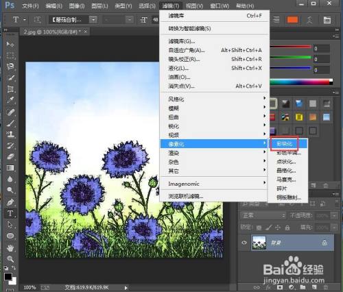 点击滤镜,在像素化中选择彩块化;