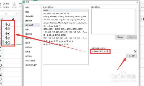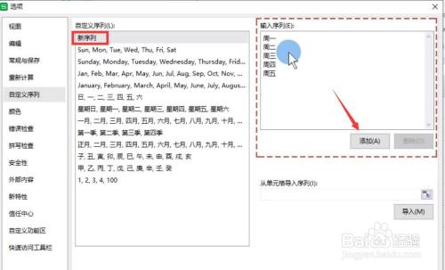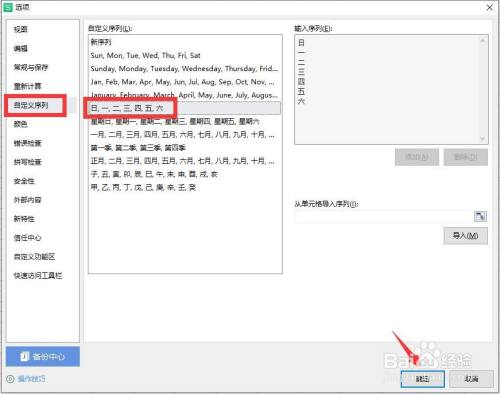 从打开如图所示的选项界面之后,切换到自界说序列选项卡,在此,我们直接操纵系统预界说的序列就可完当作相关数据的快速输入操作。