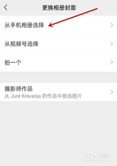 在改换相封爵面页面点击从手机相册选择。