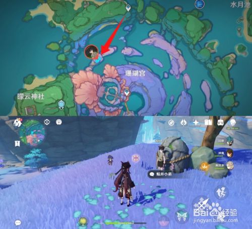 第一个,从稻妻城如图传送点按照标识表记标帜路线即可找到“鲸井小弟”(在山上面),共3次挑战,可获得珍贵的宝箱*1
