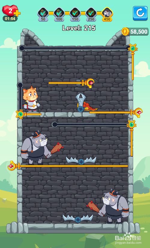 拔失落橘猫下侧的横插销,狗进入捕兽夹,如图,顺遂过关。