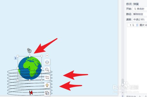 点击更改图片对象沿着弹簧路径上升的时长。至此动画建造完当作。