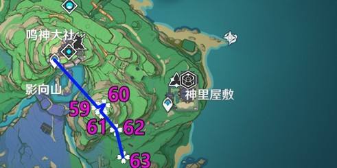 鸣神大社神樱书-神里屋敷左上山顶3条路线共12个: