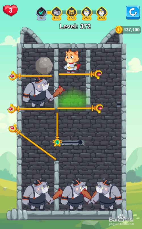 工具/原料三星Galaxy Tab S7安卓Android 11Super Kitty Rescue1.0方式/步骤1点击打开底部右侧的斜插销,如图。2点击打开右侧狗下面的横插销,狗失落到地上,如图。3点击打开气体下面的插销,下侧的两只狗被覆灭,如图。4点击打开狗上侧的斜插销,如图。5点击打开狗下面的插销,狗失落到地上,如图。6点击打开巨石下面的插销,狗被覆灭,如图,这样就通关了。END