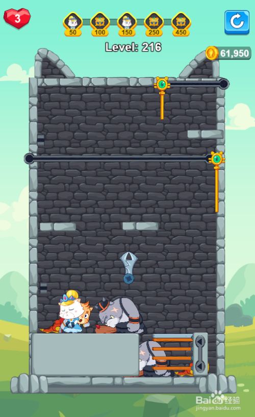 工具/原料三星Galaxy Tab S7安卓Android 11Hero Save the Princess1.0.1方式/步骤1拔失落狗右侧的竖插销,如图。2点击滑动下侧的推拉杆,滑至右端,如图。3点击滑动下侧的推拉杆,滑至左端,如图。4拔失落蛇下面的插销,如图。5点击滑动下侧的推拉杆,滑至右端,如图。6拔失落狗下面的长插销,如图。7点击滑动白猫公本家儿右侧的推拉杆,滑至左端,猫公本家儿获救,如图。这样就过关了。END