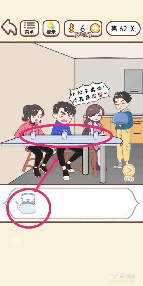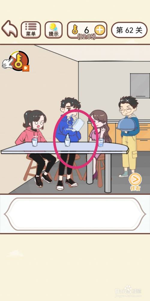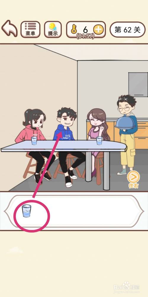 杯子里的水倒完后,点击获得男本家儿角面前的【水杯】。
