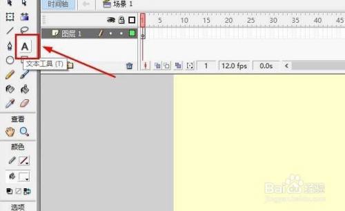 第二步,找到文本东西,在Flash8中,文本东西按钮是A字样。