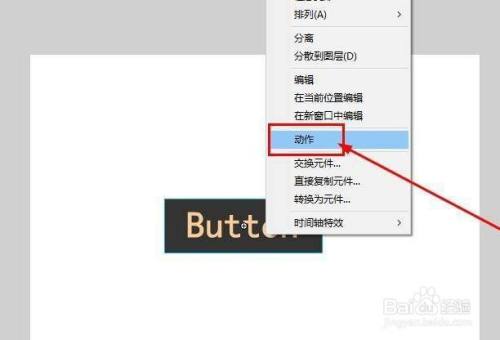 第六步,回到本家儿场景,鼠标选择元件后右键选择动作,打开动作面板