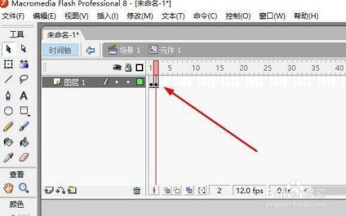 第五步,在第2帧插入关头帧并调整外形和文本的颜色