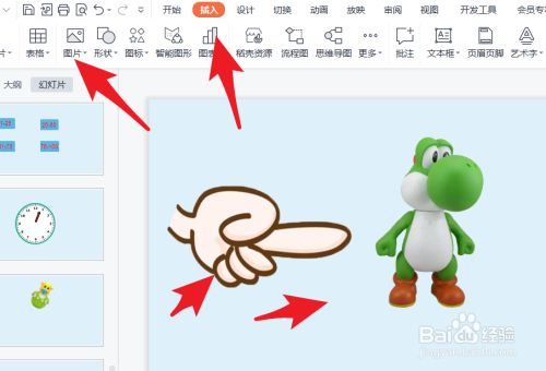 如下图所示,点击插入,点击下方图片。插入手指和玩具的卡通图片。