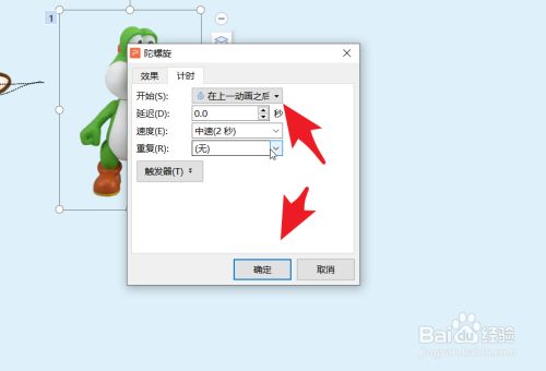 点击计时选项卡,设置“在上一动画之后”。点击确定,获得简介中的结果。