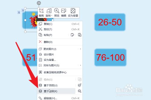 右击炸弹图片,点击“至于底层”。设计完当作后可以复制获得更多的同类结果外形。