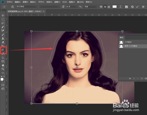 下面,我们用文字东西在路径上点击,可以看到光标变形,这时就可以键入文字了。