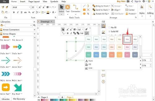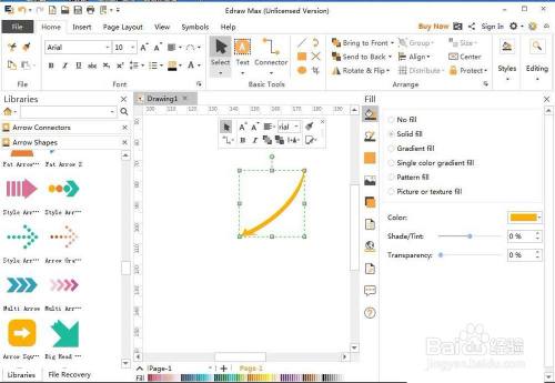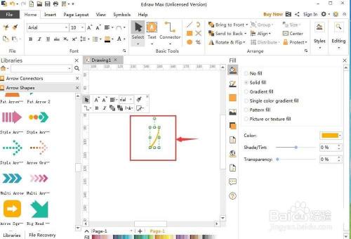 这样就在亿图流程图建造软件中建立了一个长形弯曲箭头。