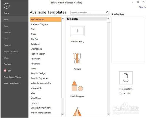 打开Edraw max,进入工作界面;