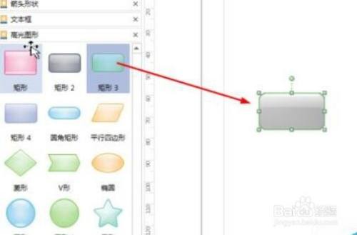6、松开鼠标,图形四周呈现绿色的虚线框和绿色的方格点,叫选择控点;有时呈现黄色菱形点,叫节制点。反复步调5和6,再拖入页面一个图形。经由过程毗连线东西,将这些图形连在一路。