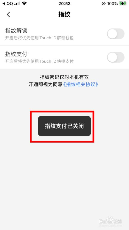 指纹支付已封闭。
