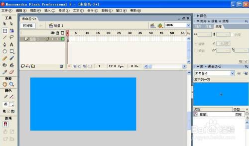第二步:新键图型元件,名字写当作星星。把布景改为蓝色的。