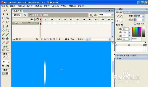 第三步:点击椭圆东西。布景颜色为白色。混色器类型选择放射状。alpha改为0拉出一个椭圆型: