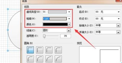 选中圆形,单击鼠标右键,选择“外形”-“线条”选项,对其线型进行编纂,如图所示。