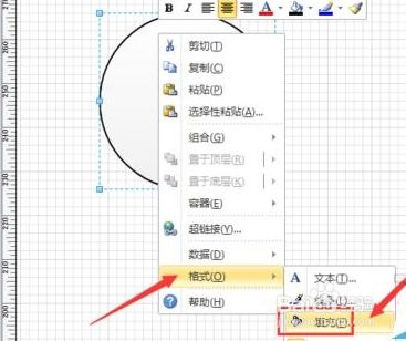 选中圆形,单击鼠标右键,选择“外形”-“填充”选项,对其内部进行编纂,如图所示。