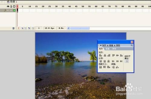 接着,从库中拖拽一张图片到舞台,并设置程度居中和垂直居中。