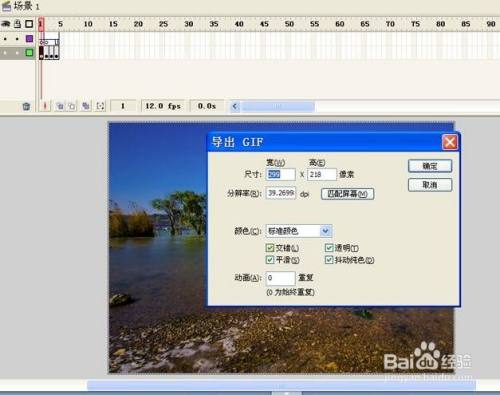 最后,执行ctrl+enter组合键测试功能,执行文件导出-导出影片,选择gif文件,将其导出即可。