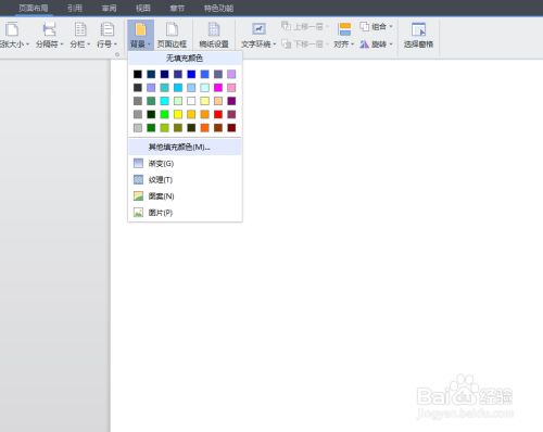打开一个需要设置预设布景的文档,在开始菜单选择页面结构下的布景。