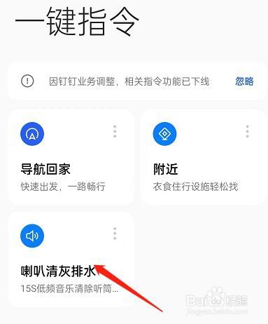 5、然后返回,去一键指令,选择‘喇叭清灰排水’。