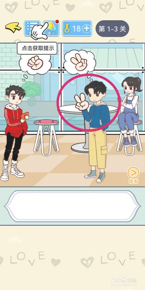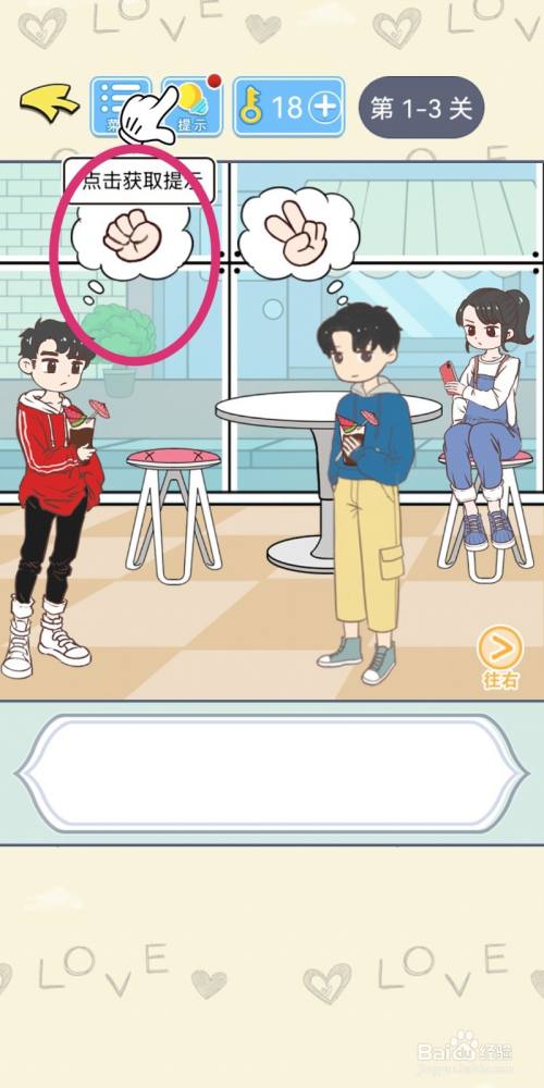 再点击男本家儿角头顶的【拳头】,男本家儿角就会获得豁拳胜利。