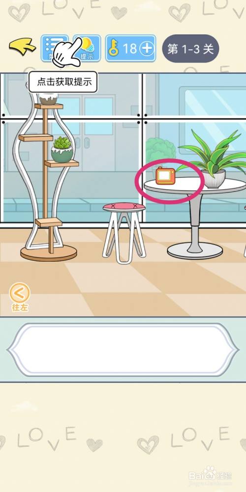 进入右侧场景,移开桌上的花盆,可以获得【相机】。