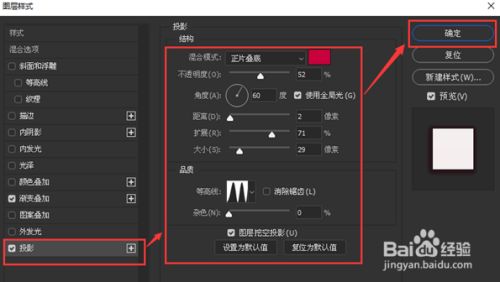7.最后为该图层添加红色投影,并点击确定保留即可