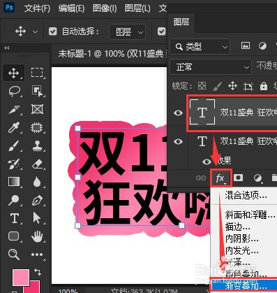 3.鼠标点击布景上方图层,在fx设置中添加描边结果