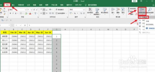 第一步我们打开excel表格,在接近的空白辅助栏中输入数字“1”