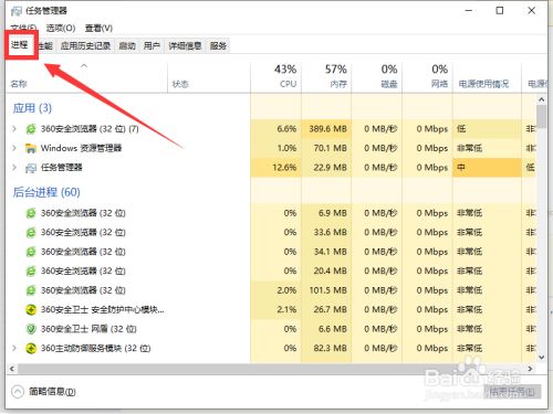 方式一:按键盘上的“Ctrl + Shift + Esc”键,打开“使命办理器”,点击“历程”选项。