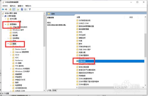 接下来我们打开如图所示的组策略编纂界面,切换到设备安装选项卡,
