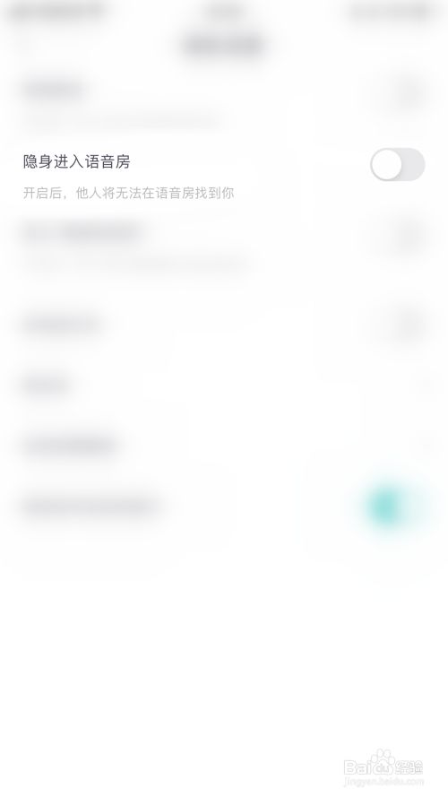 隐私设置界面点击“隐身进入语音房”后面的圆点