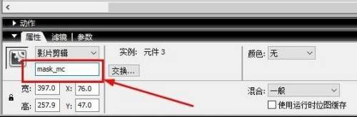 第八步,设置影片剪辑元件的实例名为mask_mc