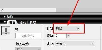 第六步,一般在高版本软件中,只要右键也可以建立补间外形,可是在Flash8里,右键只有补间动作,所以要在帧的属性面板中选择补间的类型,如图所示