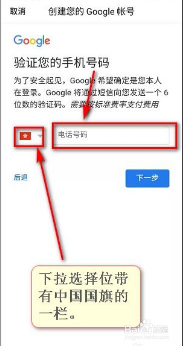 将国度选择为【中国】,点击【下一步】。