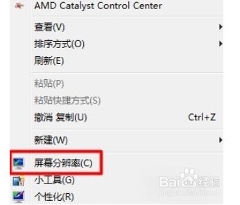 将显示器的两条数据线毗连到统一张图形卡,然后打开显示器的电源。此时,在桌面上单击鼠标右键。在弹出的对话框中选择【屏幕分辩率】。