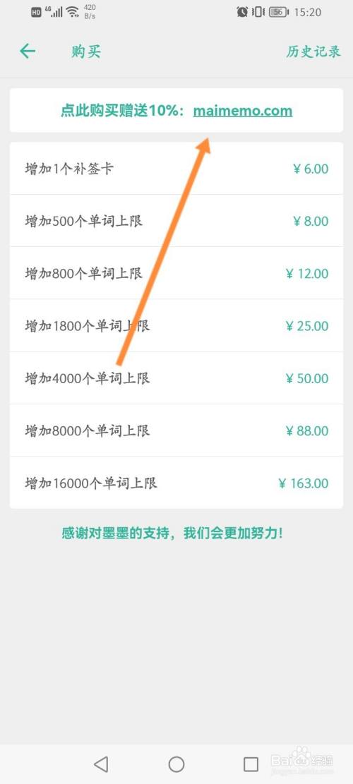 点击采办单词上限。