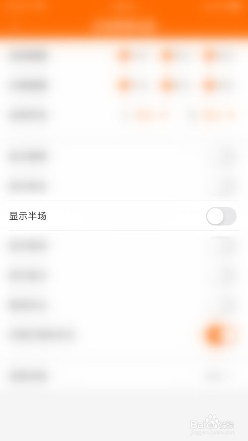 “显示半场”后面的圆点变为橙色即暗示启用出奇体育显示半场当作功