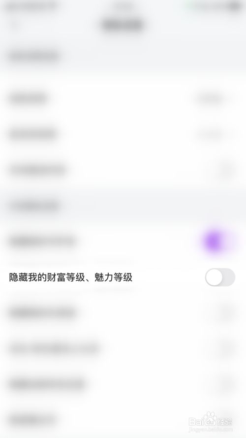 隐私设置界面点击“埋没我的财富品级、魅力品级”后面的圆点