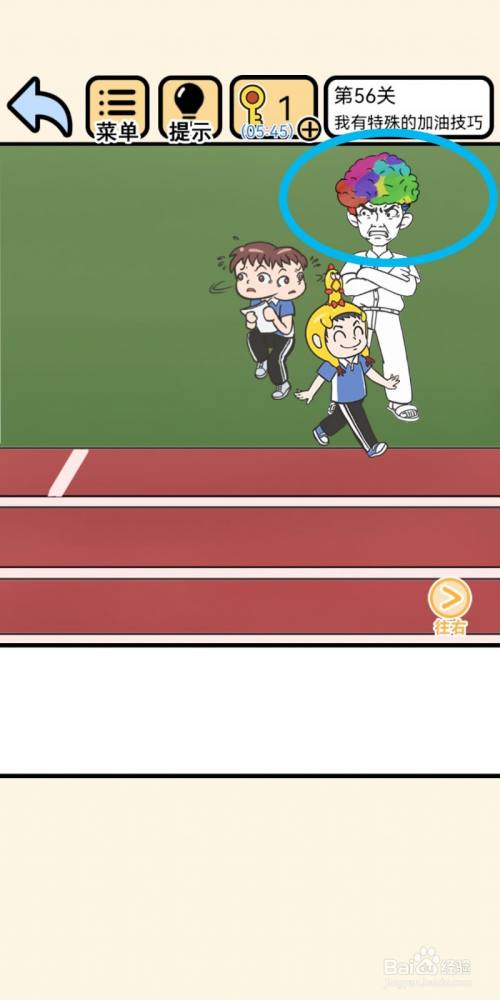 把彩虹爆炸头假发给教员戴上,鸡冠同窗被吸引走,就会半途分开赛道,游戏掉败。