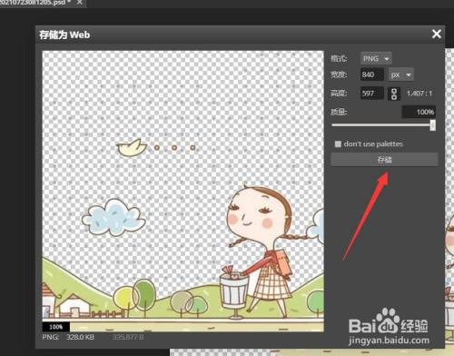 如图所示,在弹出的存储界面中,我们设置响应的图片质量后,点击存储按钮即可。