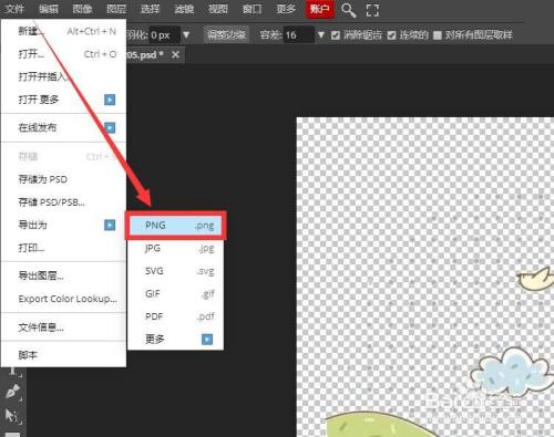 之后,我们点击文件菜单中的保留选项,将图片以PNG格局保留,就可以保留透明布景细节部门了。