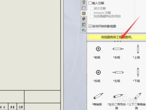 然后将一个视角的零件图拖进工程图里面。